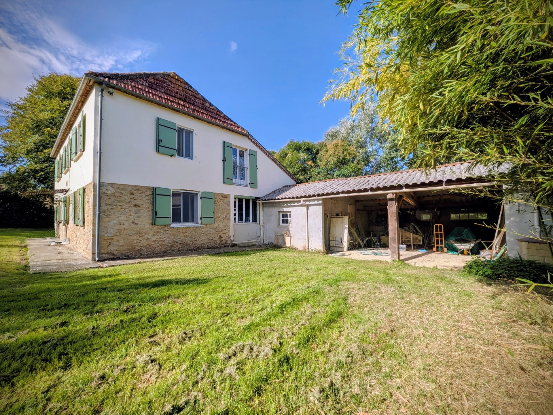Attenants à la maison, vous trouverez une grange de 70 m² et un local piscine.