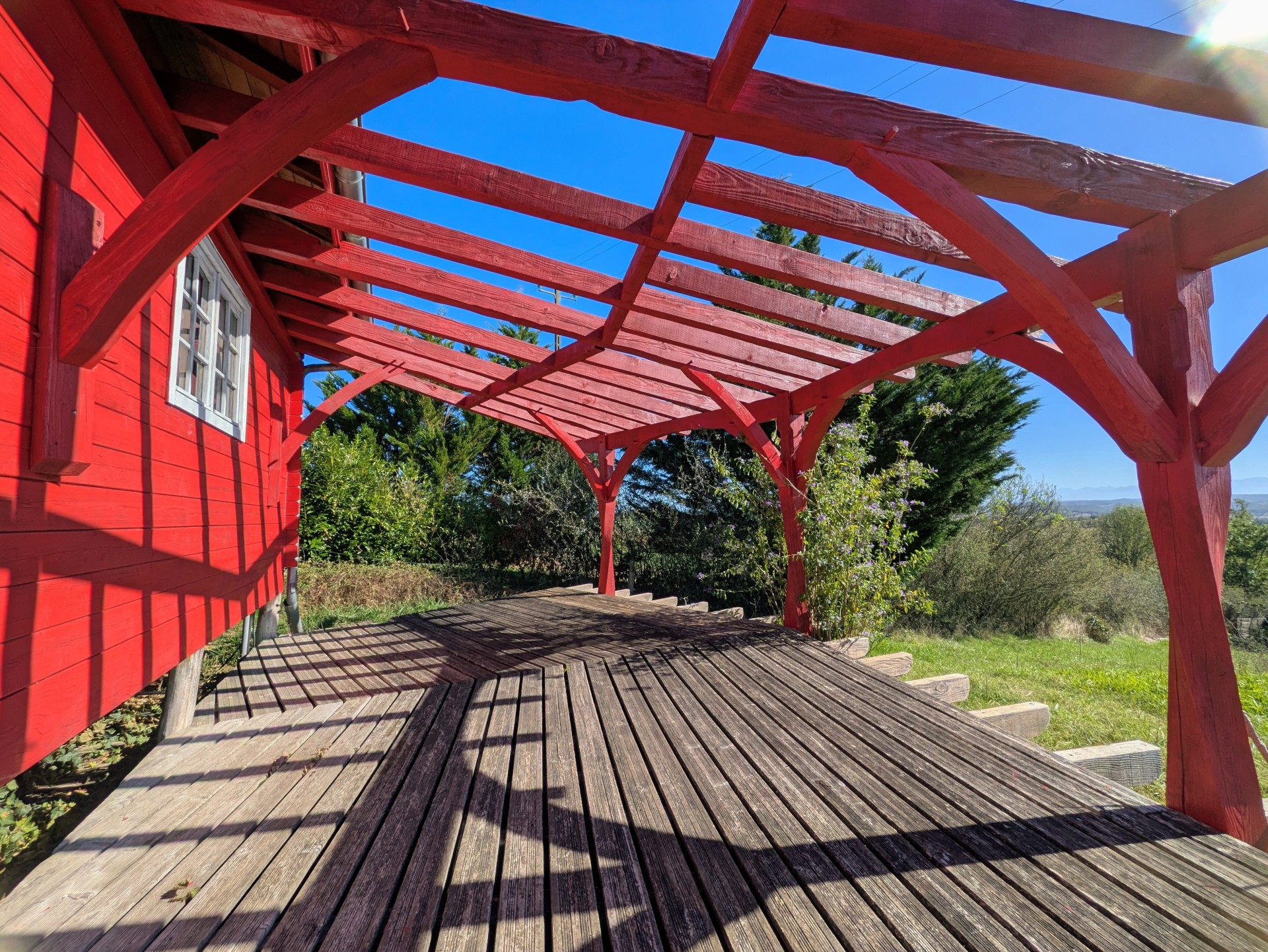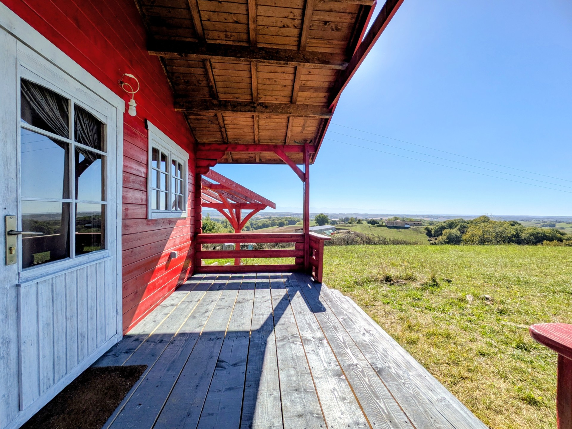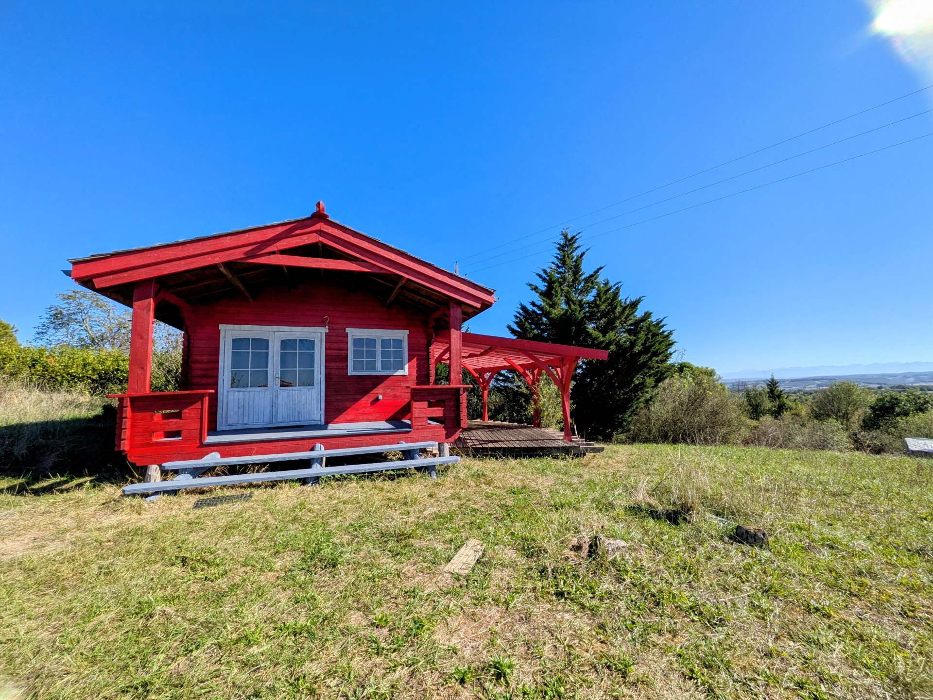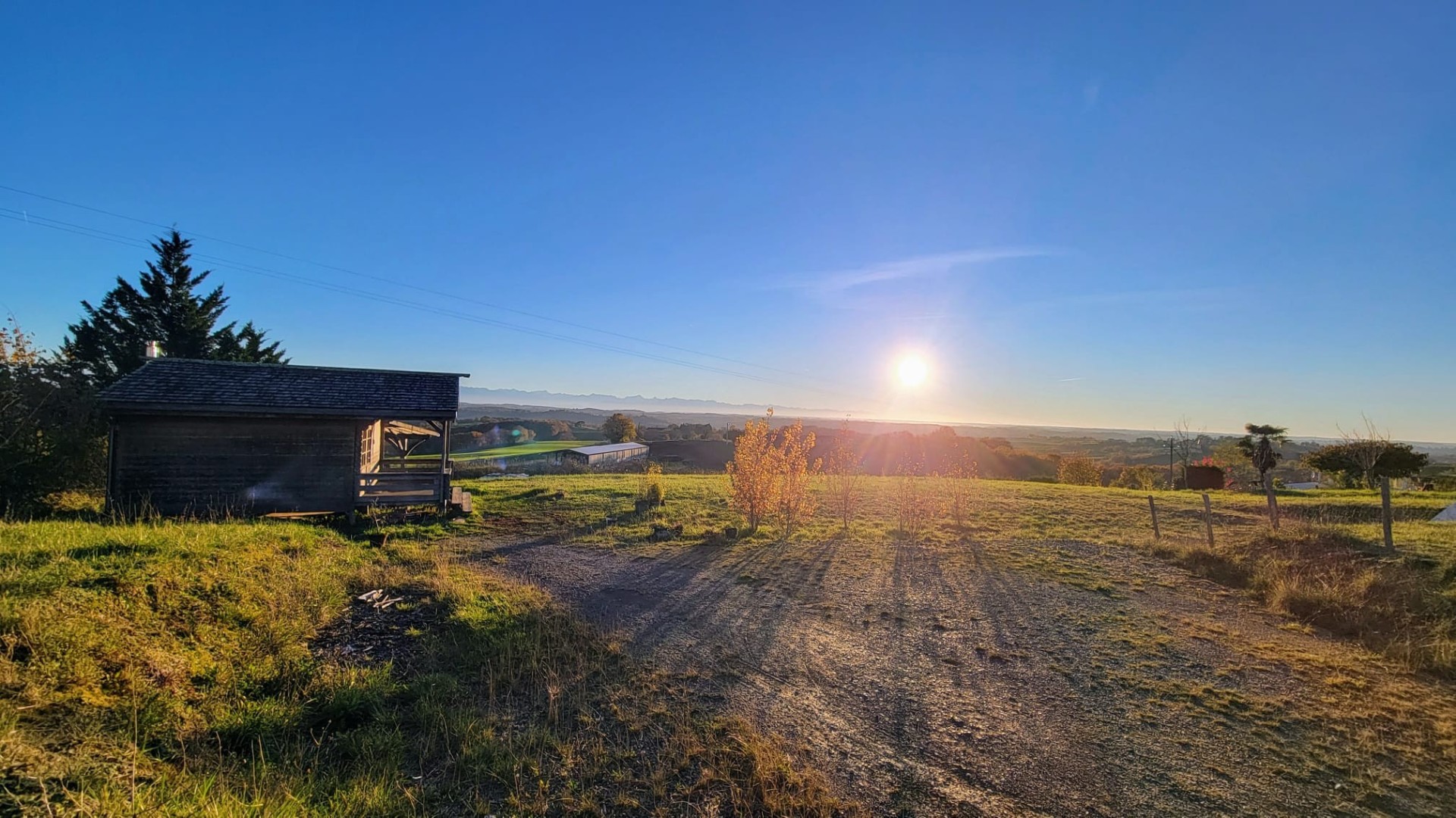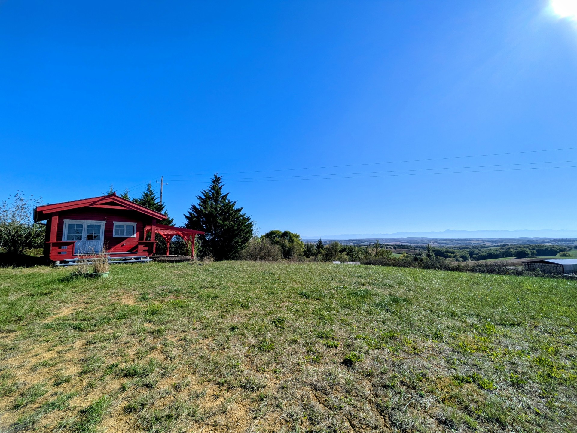 A quelques minutes de Marciac, dans un environnement paisible et calme, petit chalet en bois d’environ 20 m² habitables et 20 m² de terrasse, sur un joli terrain de 3792 m² en position dominante, exposé sud et profitant d’une belle vue dégagée sur la campagne et les Pyrénées.