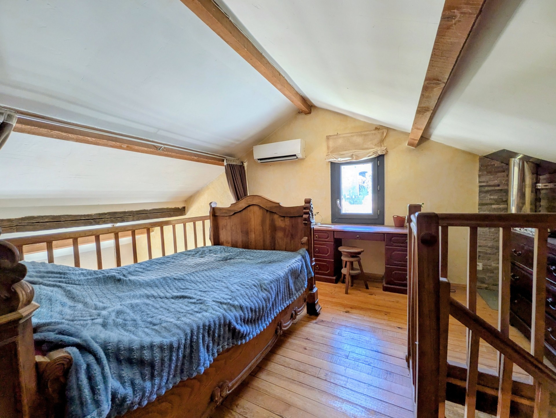 Récemment rénovée, elle offre un confort moderne avec double vitrage et pompe à chaleur, garantissant une bonne performance énergétique. La maison dispose d’une spacieuse pièce de vie, d’une chambre de plain-pied, ainsi qu’une seconde chambre aménagée dans une mezzanine pleine de caractère.