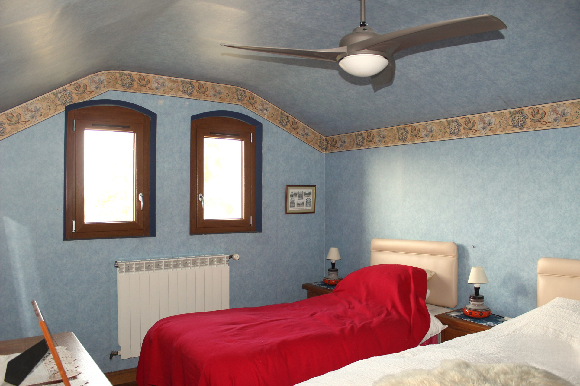 A l'étage, le palier dessert trois chambres , dont deux avec dressing aménageable sous combles, une belle salle de bain avec baignoire et douche, un wc séparé et un petit grenier. La surface habitable de 164m2 est complétée par le sous sol total de 87m2. Le garage peut contenir deux voitures. L'accès à la maison est sécurisé par un portail automatique avec vidéo surveillance.