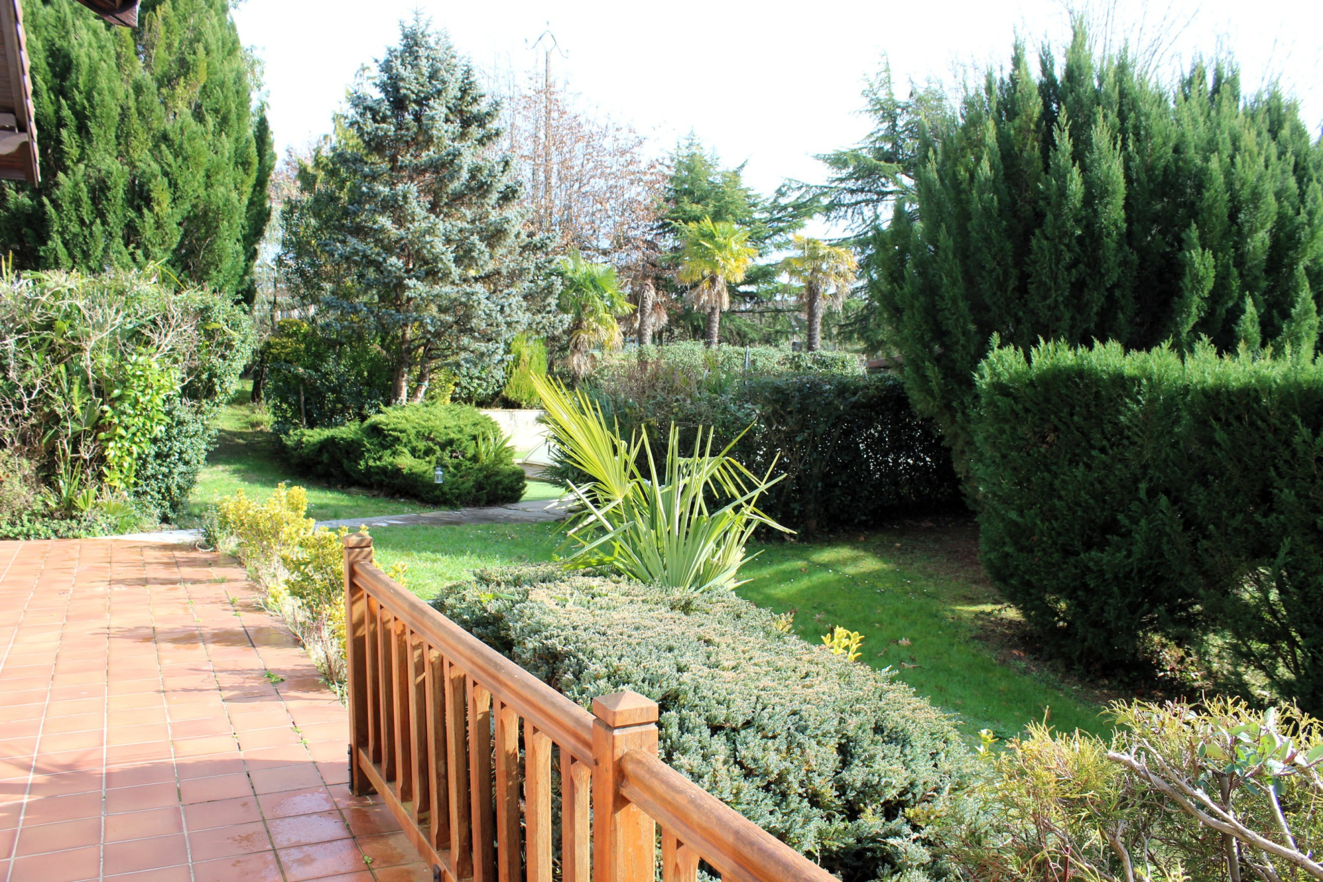 Sur le terrain de 8811 m2, entourée d'un joli jardin paysagé, la maison est construite sur un sous sol total avec double garage et caves.