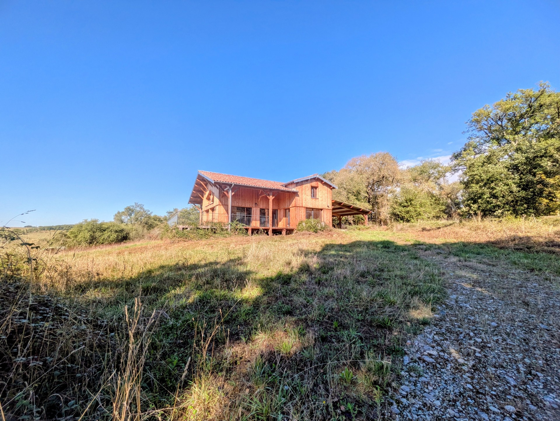 Située à proximité de Montesquiou, dans un environnement calme et sans vis à vis, cette maison en bois contemporaine construite en 2020 séduit par son emplacement dominant et sa vue imprenable sur la campagne gersoise et les Pyrénées.